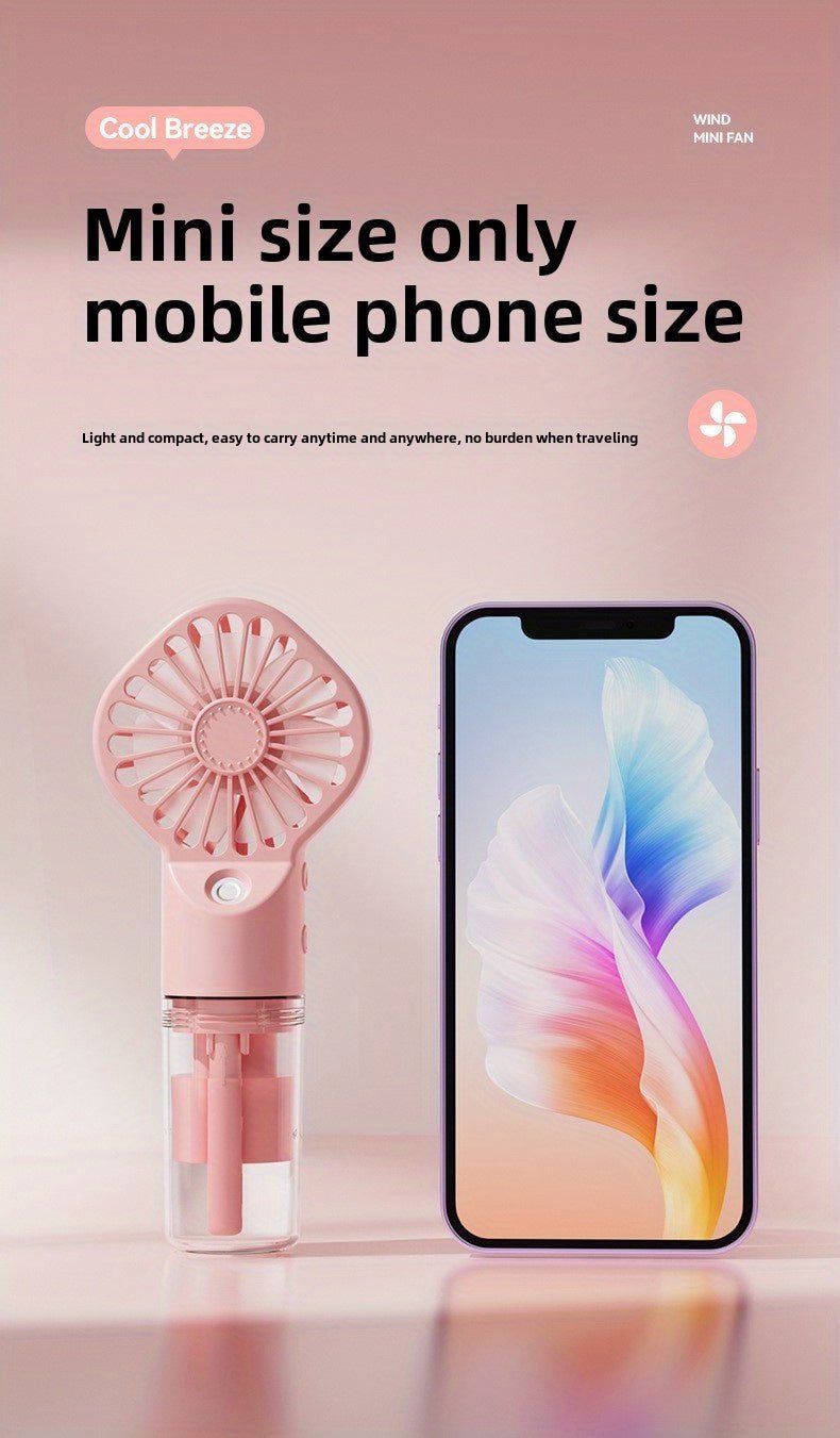 This multifunctional gadget combines powerful airflow, nano mist spray, and silent performance in a sleek, handheld design.