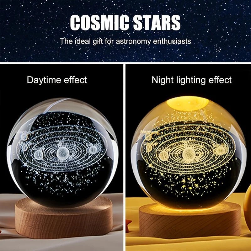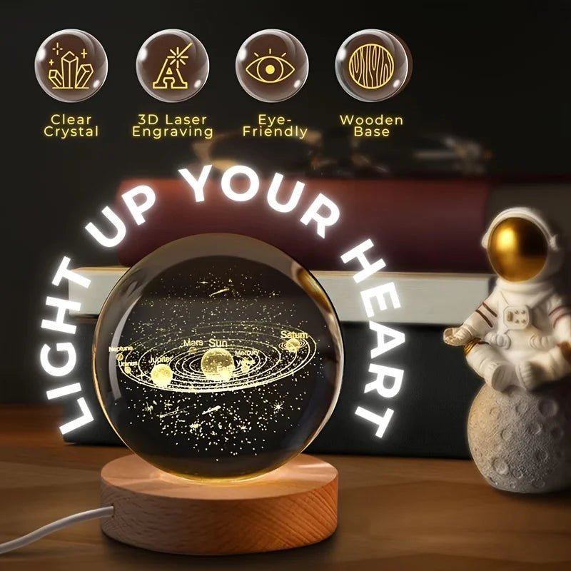 Solar System & Moon 3D Crystal Ball Night Light – USB Powered Space Lamp with Laser Engraving